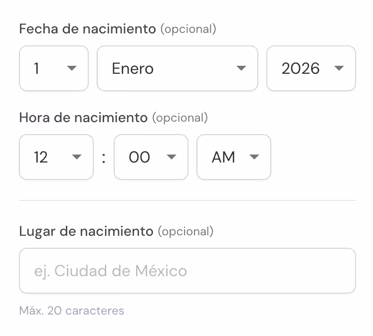 Agrega el nombre, talla, peso, lugar y fecha y hora en que nación. Puedes elegir también el color del fondo.